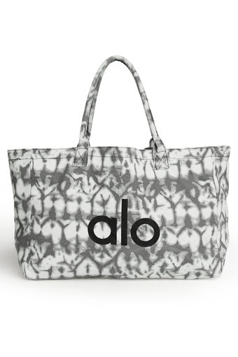 Carry-it-all in style with the Tie Dye Shopper. This perfectly oversized, heavy-duty canvas bag features corded handles, an Alo Yoga logo, and a gorgeous grey tie-dye pattern.